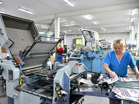обложки с бигованием, контроль качества, скорость до 10 000 брошюр в час, прямые скобы и Евроскобы.
