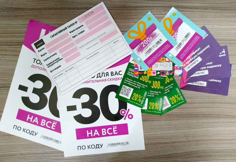 • купоны,